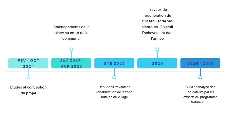 Ce projet est lauréat de l’Appel à Manifestation d’Intérêt Eau et Climat (2023-2026) de l’Agence de l’Eau Rhône Méditerranée Corse. Celle-ci finance le projet à hauteur de 70%. Cet AMI a cadencé le calendrier du projet compte tenu du délai de réalisation limité dans le temps (décembre 2026).